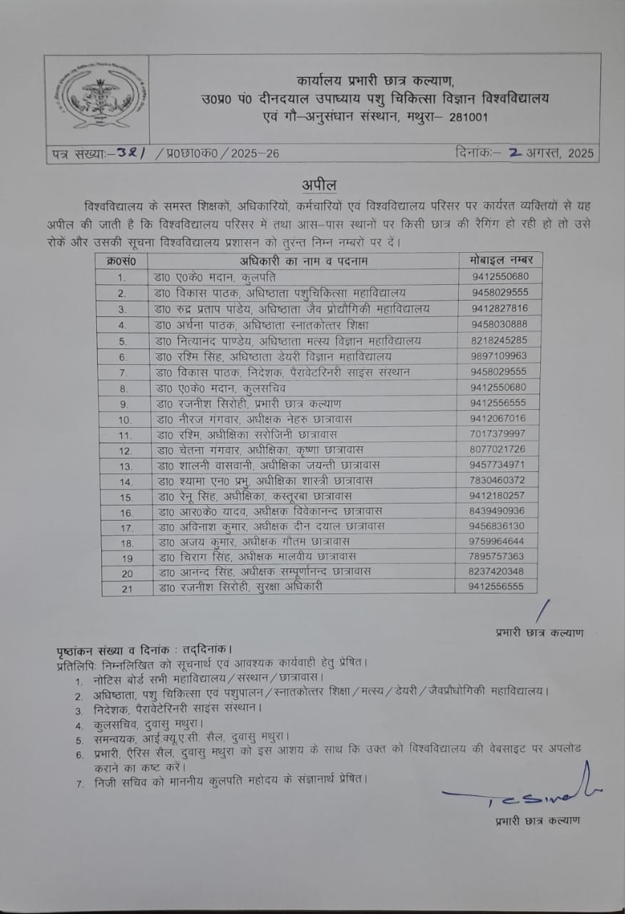 Welcome to Pandit Deen Dayal Upadhyaya Pashu Chikitsa Vigyan Vishwavidyalaya Evam Go-Anusandhan Sansthan Mathura (Uttar Pradesh)