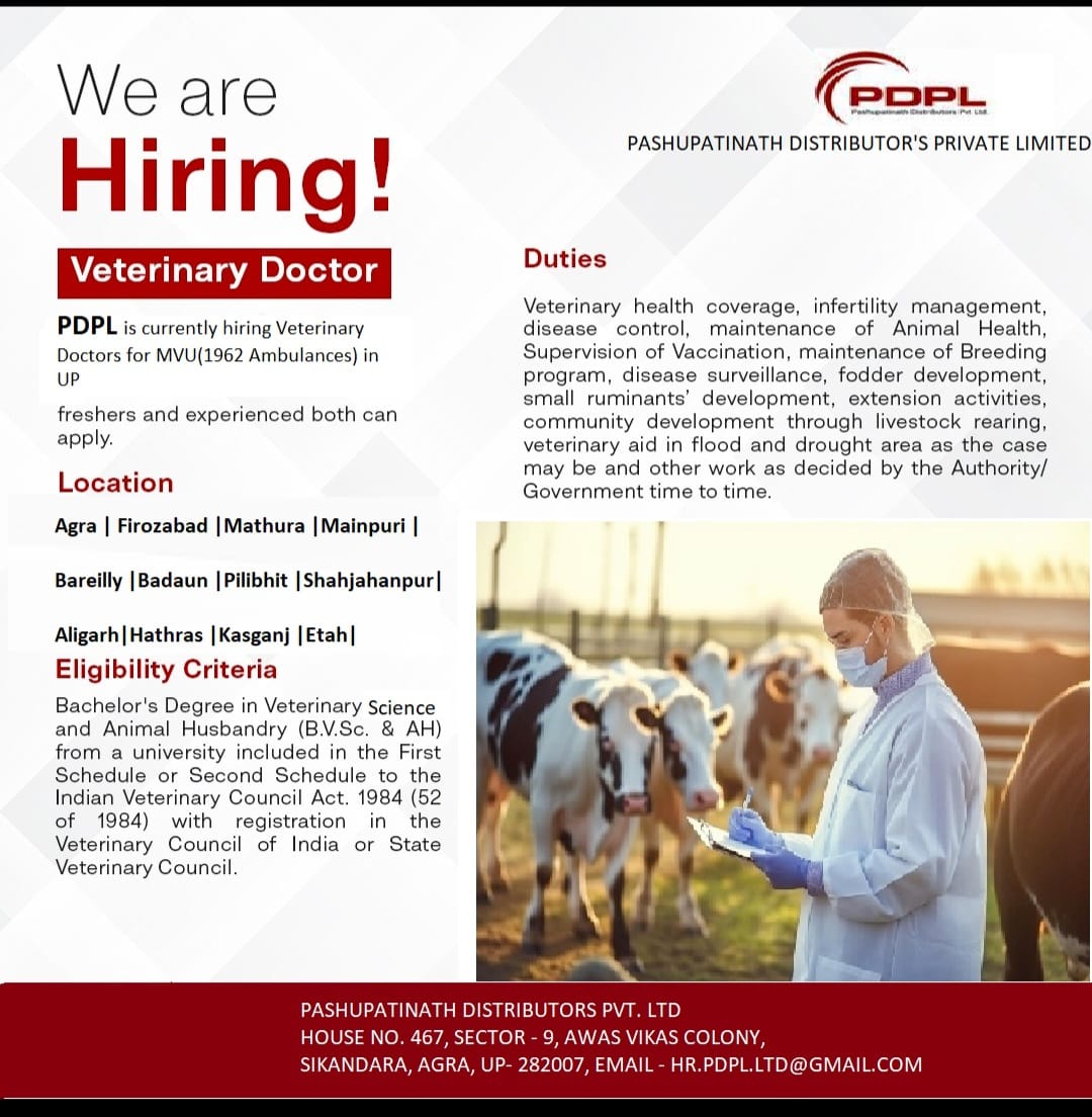 01/12/2021 Job Opportunities for Veterinary doctors in meat plant, Aligarh (PN-149/2021)